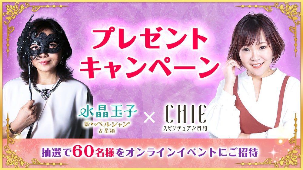 イベントのコラボを記念したプレゼントキャンペーンでは、当社が運営する両占いサイトの会員様の中から抽選で各サイト30名様にイベントに無料で参加できるオンラインチケットをプレゼントいたしますので、皆さま奮ってご応募ください。