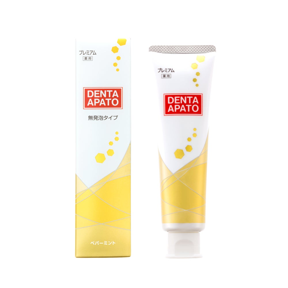 デンタアパトーシリーズ累計売上No.1*2。 発泡剤無配合のため、泡で歯面が隠れることなく、丁寧なブラッシングに繋がります。 マイルドミントのフレーバーでやさしいみがき心地。 ※パッケージデザインは順次切替 ●医薬部外品/薬用歯みがき |