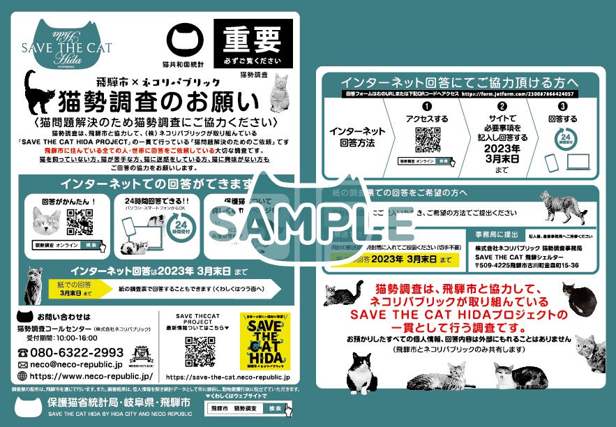 猫勢調査の配布は、岐阜県飛騨市を通して行います。