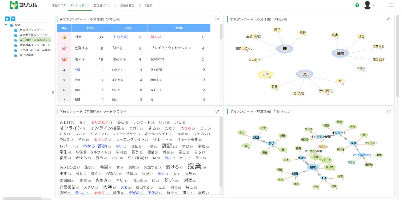 今後はデータの品質向上の取り組みも進めながら、判断が難しい情報収集結果に対し、ヨリソルの分析機能を活用して、教育活動の改善につなげていきたいと考えています。