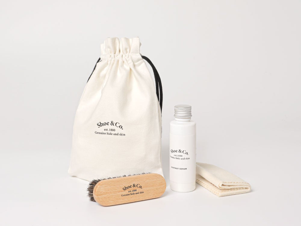 す。また、メンテナンスに便利なオールインワンのシューケアセットもあわせてディレクションし、店頭限