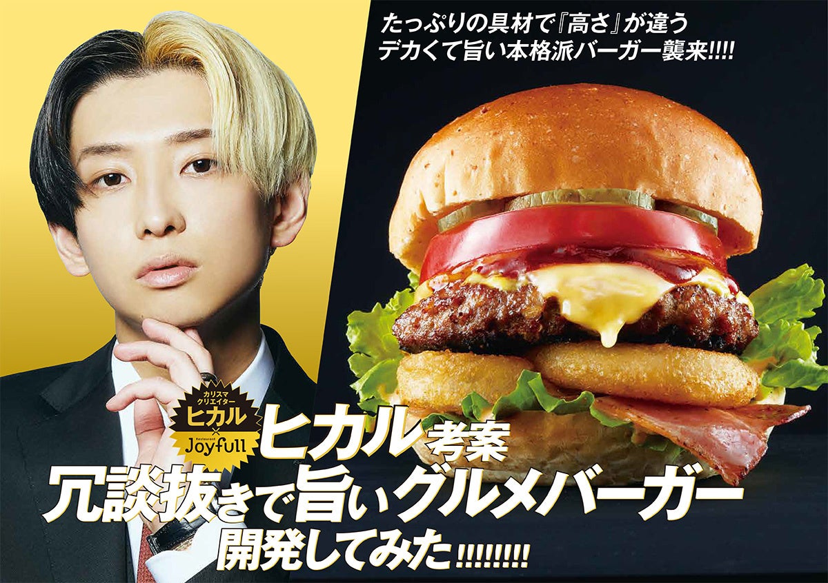 ファミリーレストランのジョイフル(株式会社ジョイフル 本社:大分県大分市 代表取締役社長:穴見くるみ)は、2022年5月31日(火)15時より、カリスマクリエイター ヒカルさんとのコラボレーション商品第3弾「ヒカル考案 冗談抜きで旨いグルメバーガー」を全国のジョイフル店舗にて販売開始する事をお知らせします。