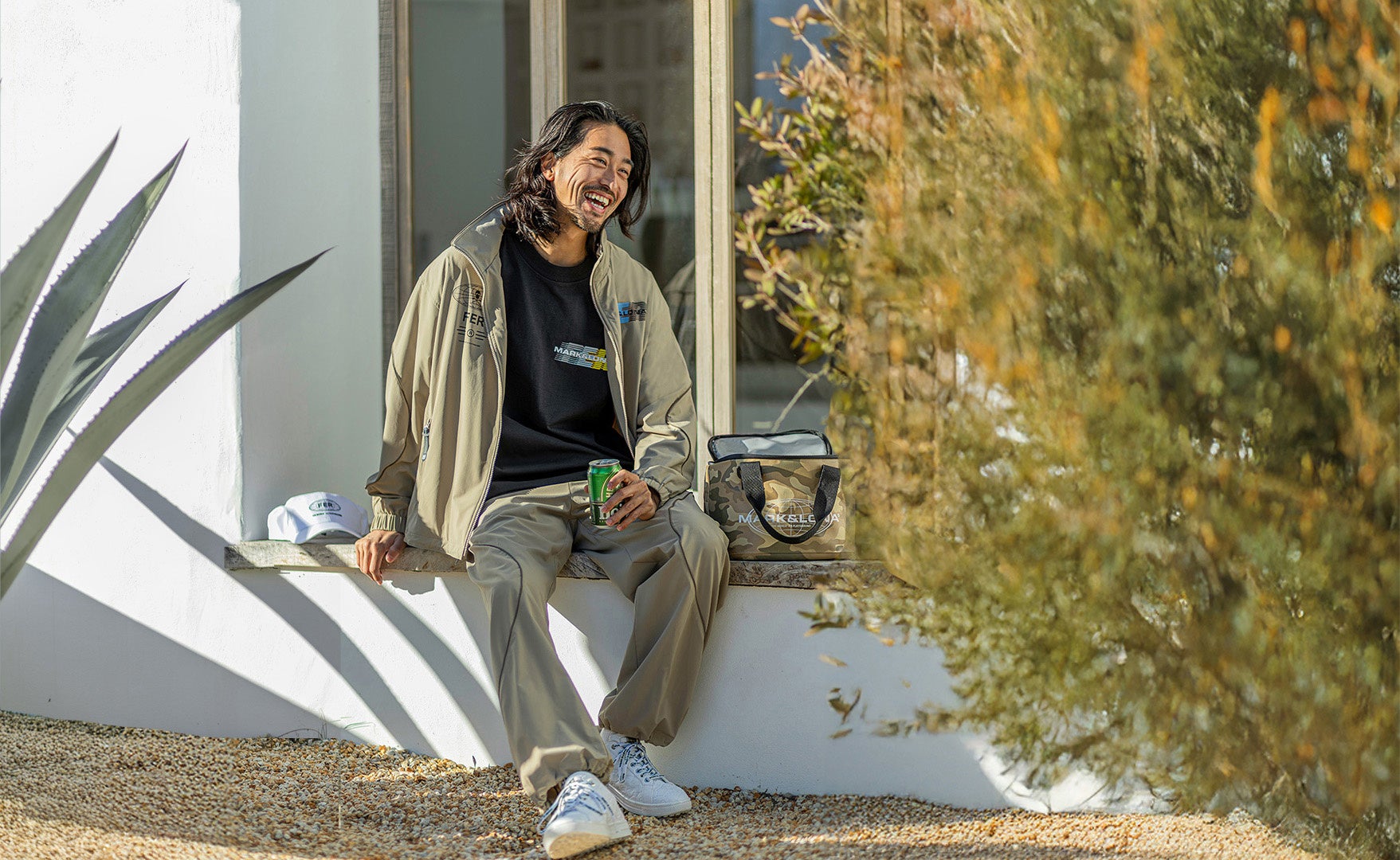オーバーサイズのTシャツや、流線的な切り替えラインが特徴的なスタンドカラージャケットのセットアップ、ラグランスリーブのルーズフィットシルエットが魅力のダンボールニットのノーカラージャケットなど、スポーツシーンだけでなくタウンユースとしても取り入れやすいデザインが揃います。また、フロントとバックにビビッドなサークルロゴをあしらったフーディやTシャツは、コーディネートの主役としても活躍。ゴルフ、サーフ、タウンユースなど、幅広いシーンで快適に着用できるアイテムを展開します。