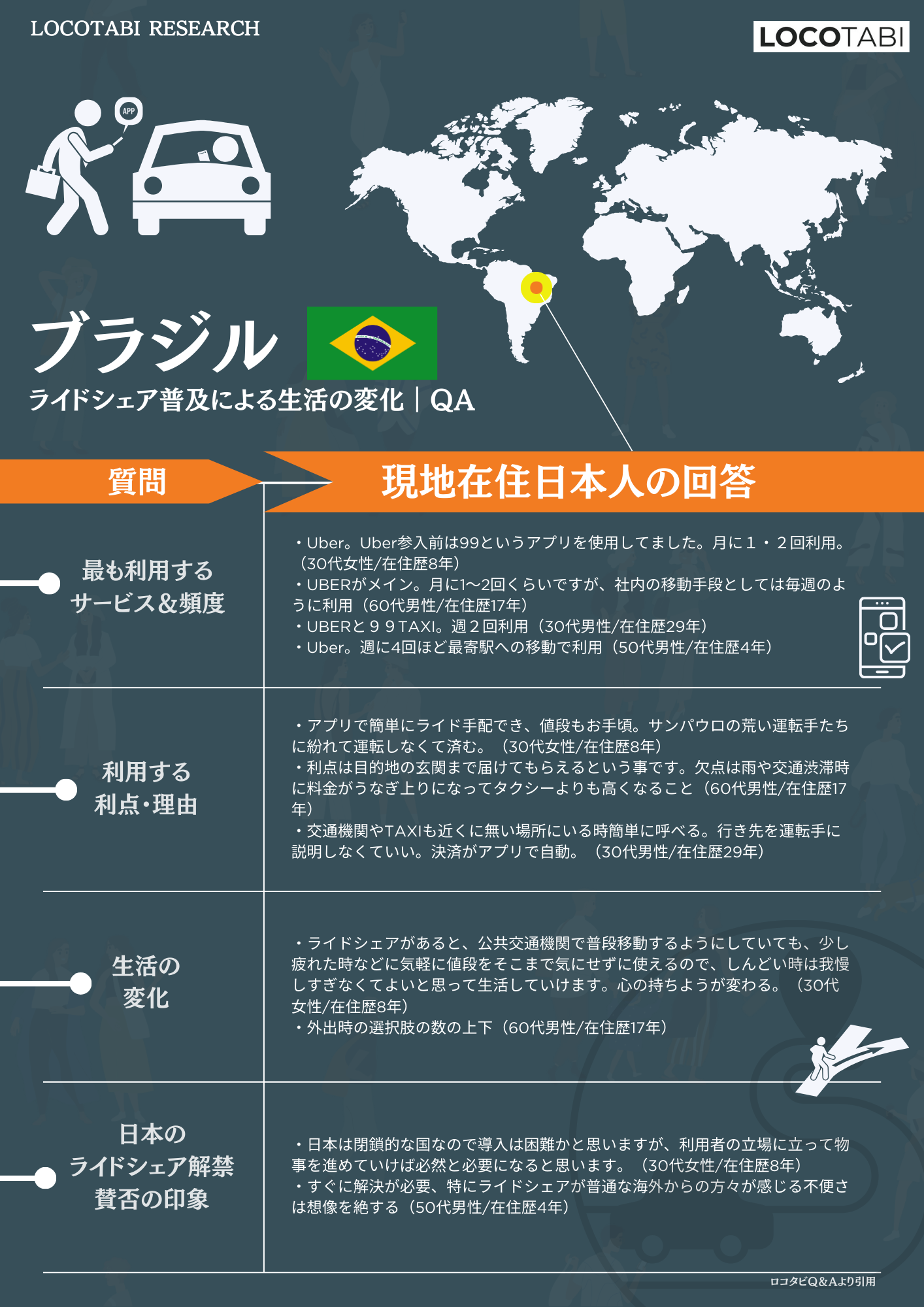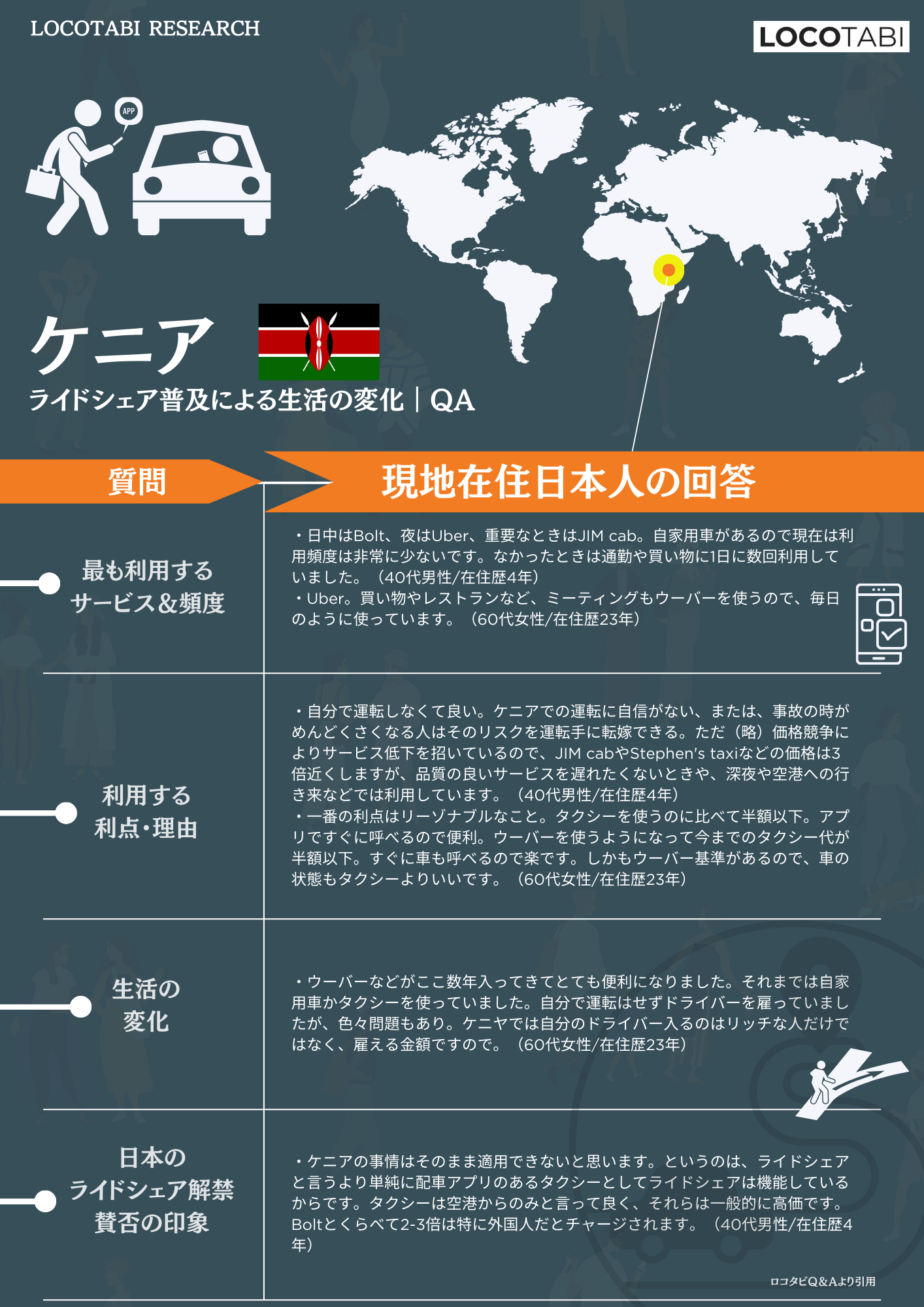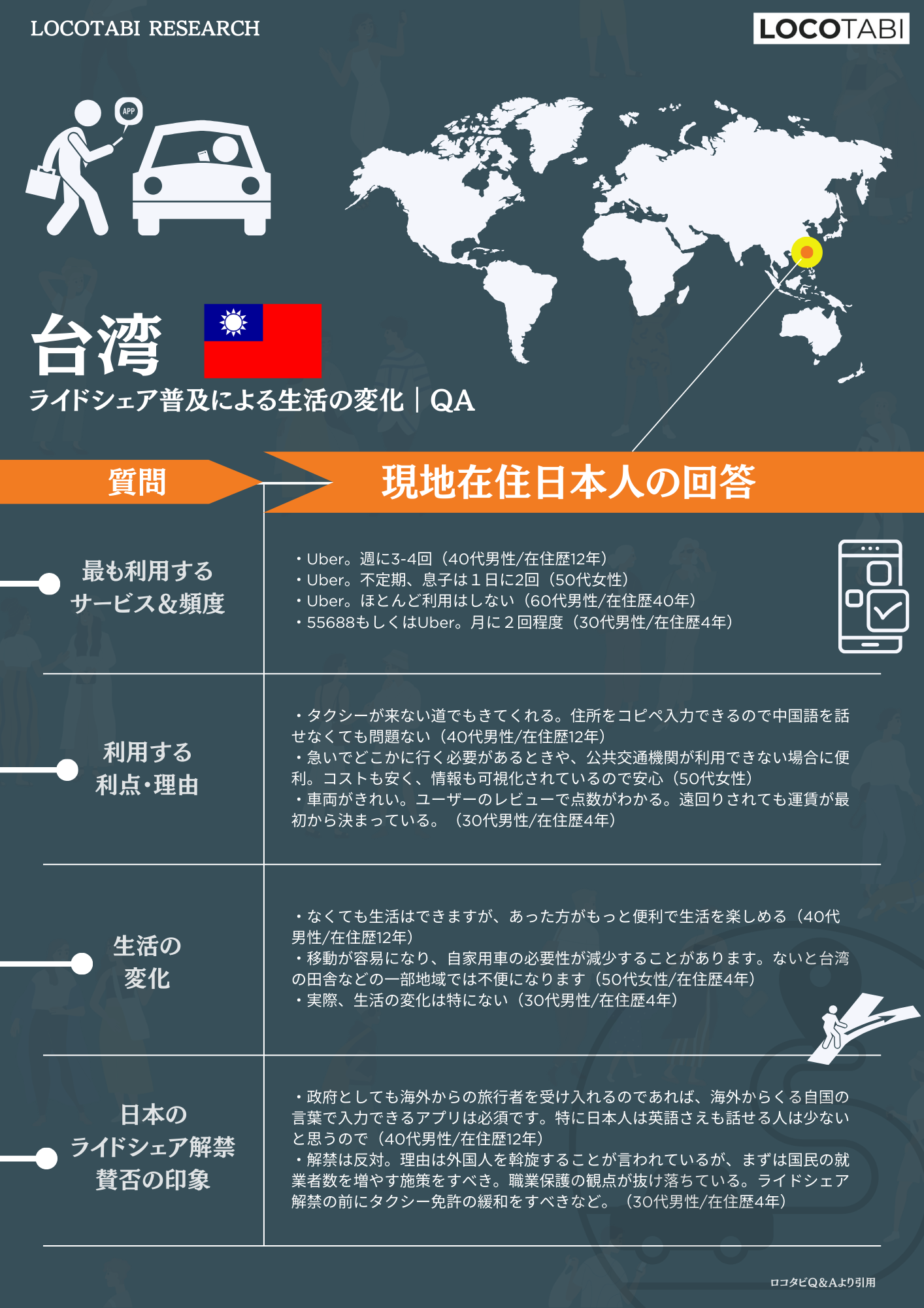 そんな中、日本ではライドシェア解禁に関する議論が活発化。交通安全や規制緩和、環境への影響など、多岐にわたる論点が展開されている。一方、ライドシェアが日常にどれほどの利便性や変化をもたらすのか、実際に導入されていない日本ではユーザー視点の情報があがりずらい実態がある。そこでロコタビでは「ライドシェアは生活にどのような変化をもたらすのか」を探ることを目的に、ライドシェアが普及している国に住む日本人を対象に、生活の変化や日本のライドシェア解禁議論に対する心境についてヒアリングを行った。