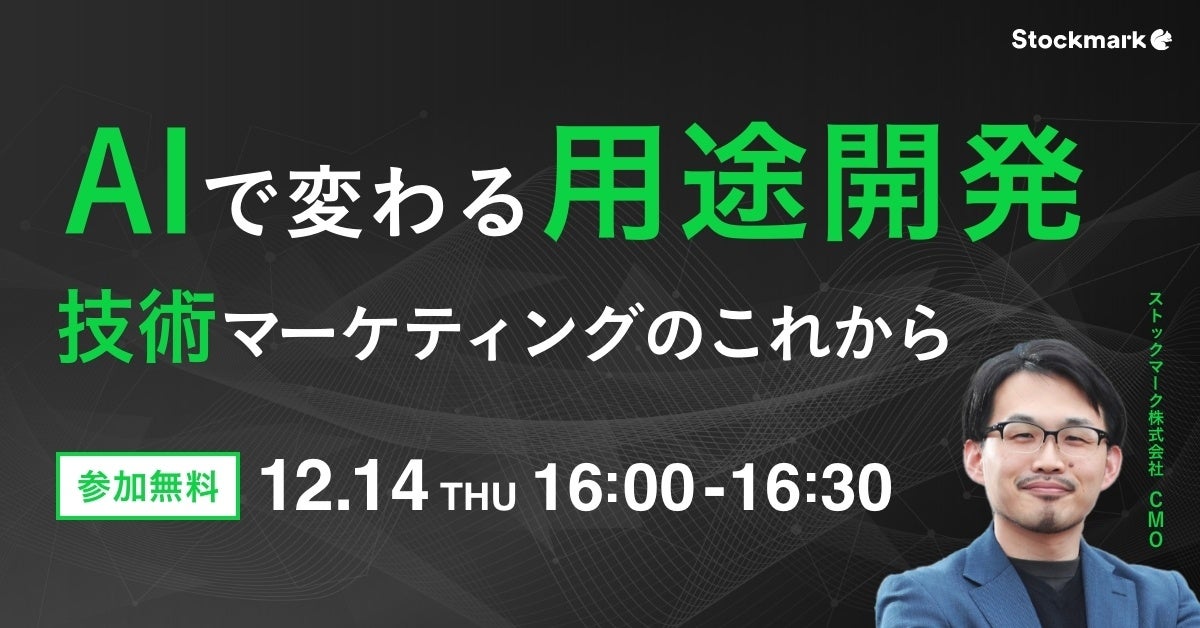 【12月14日(木) 無料セミナー】『AIで変わる用途開発 -技術マーケティングのこれから-』を開催(ストックマーク主催)