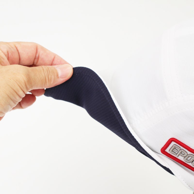 運動時に発生した「汗」を内側の繊維が素早く吸収し、蒸発を加速させることで帽子内の熱を奪い、温度上昇を抑える効果がある「気化熱の原理を用いた素材」を使用しています。
