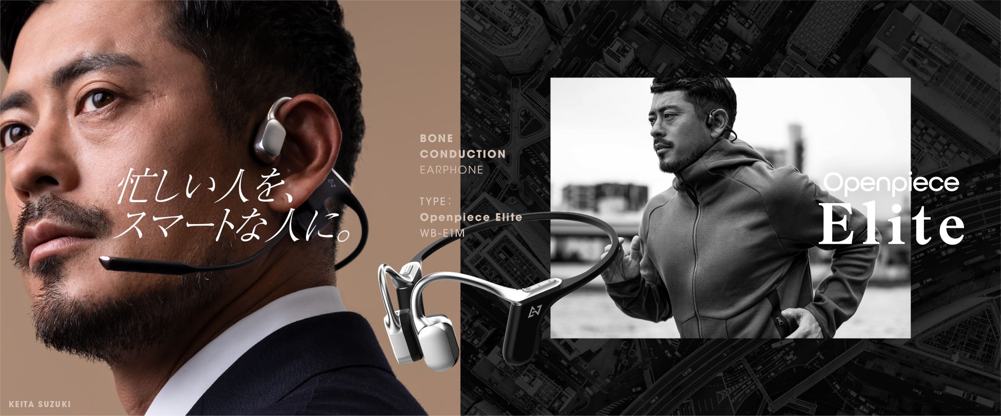 「Openpiece Elite」はオープンタイプならではの軽い着け心地と高音質を両立した骨伝導イヤホンです。骨を通じて音を振動として届けるため、耳穴を密閉することなく周囲の音を聞きながら音楽を楽しめる本機は、圧倒的な高音質、仕事でもプライベートでも役立つ機能、あらゆるシーンにマッチするスマートなデザイン、その全てを満たす、唯一無二のプレミアムな一台です。