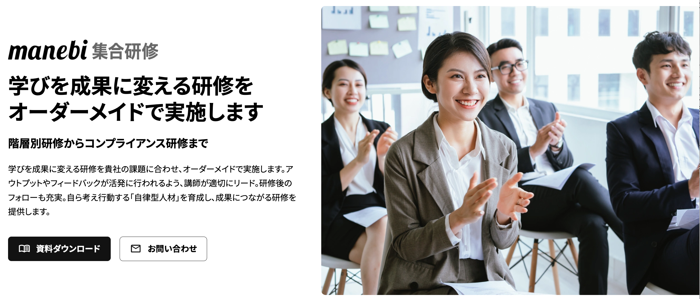 そこでmanebiは、“読む”教材の活用を強化。すき間時間での復習や、自分のペースで深める学びを後押しし、研修効果を実務の成果へつなげます。