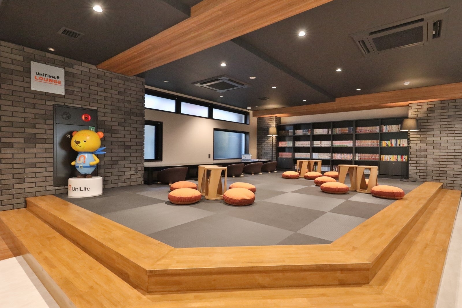 入居者同士の交流や、ちょっとした息抜きのスペースとして利用できるUniTime Loungeでは、500冊以上の常設の書籍を、さらに自身のスマホやタブレットで40,000冊以上の漫画や雑誌を自由に読むことができます。おうち時間を少しでも充実したものにできればと思います。