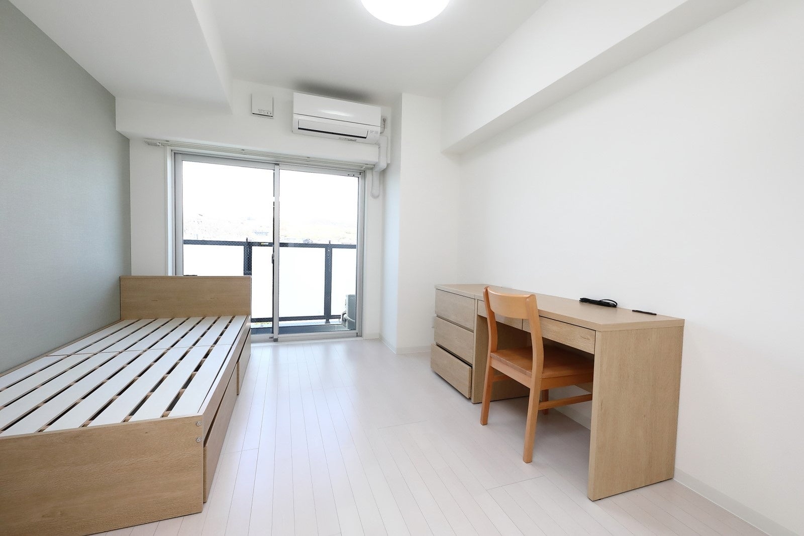 個室内はプライベートを重視したバス、トイレ、独立洗面化粧台を設置した完全個室となっています。室内にはベッド、デスク、チェア、クローゼット、洗濯機、冷蔵庫、電子レンジといった家具家電を備え付け、引越しによる手間、時間、費用の負担を減らしています。