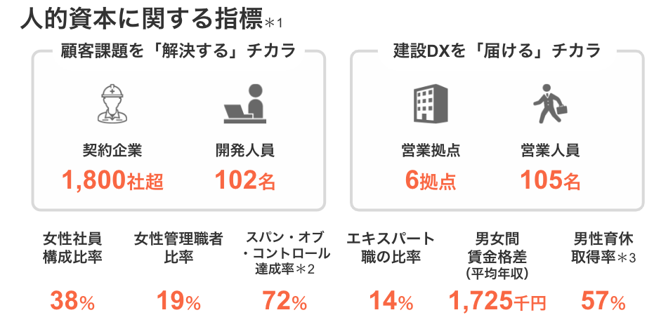建設業を主な対象にVertical SaaS事業を展開する当社の持つ資源のほとんどは、無形資産であり、顧客の働く喜びの創造には社員一人ひとりの成長が欠かせません。