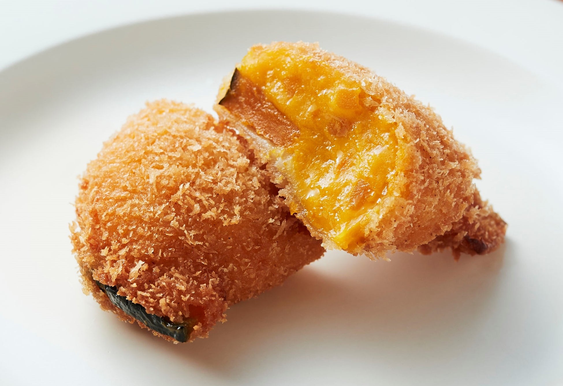 「かぼちゃのクリームコロッケ」は、発売を待ち望むお客様も多いこの時期の人気商品。ホクホクのかぼちゃと甘くてなめらかなクリームがたまらない一品ですが、甘さは控えめに、スイーツではなく食事として召し上がっていただけるよう仕上げています。