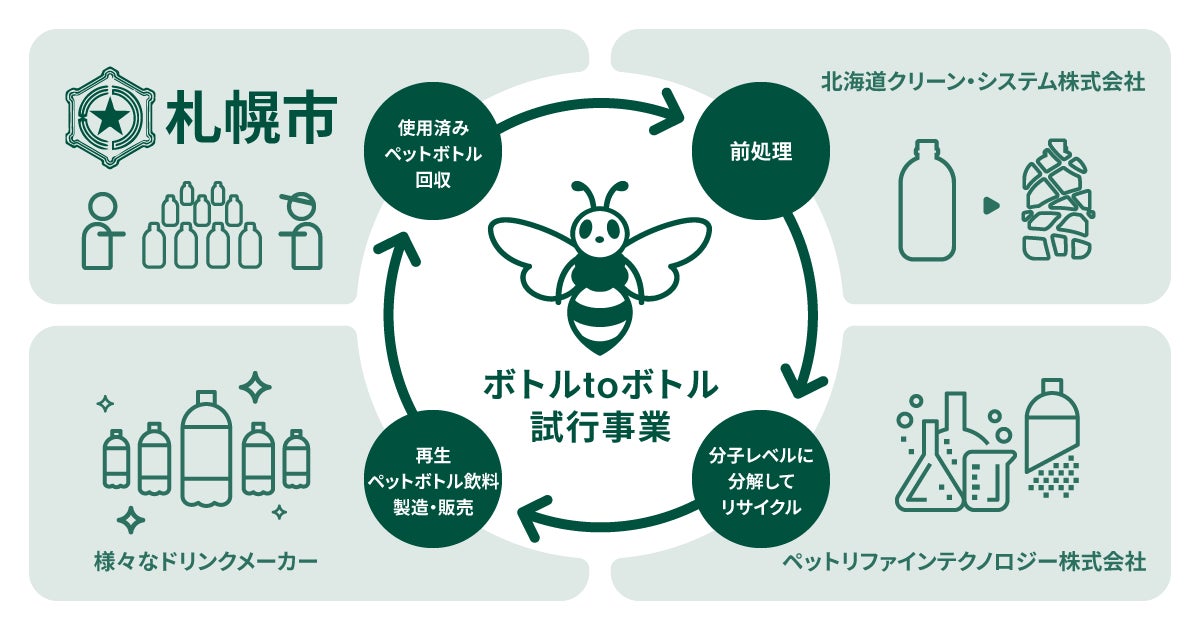 JEPLANグループ:ペットリファインテクノロジー、北海道札幌市と「ボトルtoボトル試行事業」を開始