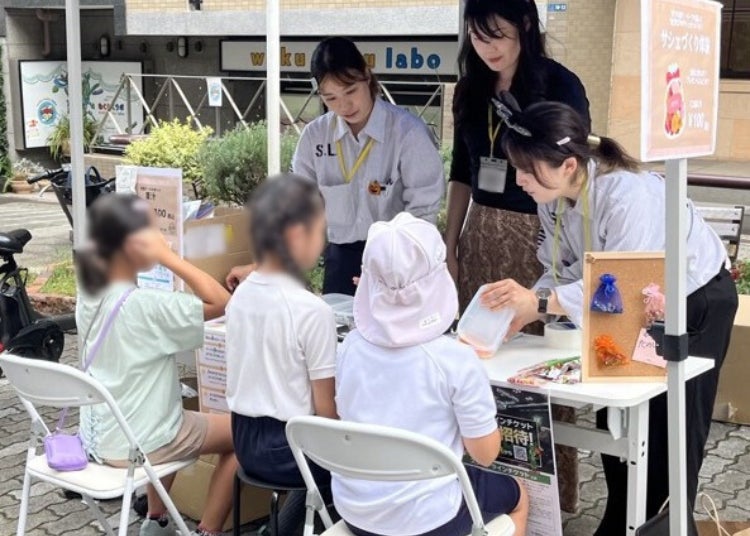 当社ブースではIBUKI YOKOHAMA FARM4(map)のご利用企業様より協力いただいたハーブを使用した『ハーブソルトポップコーン』や、ハーブの香りを楽しんでいただける『サシェづくり』を体験いただきました。