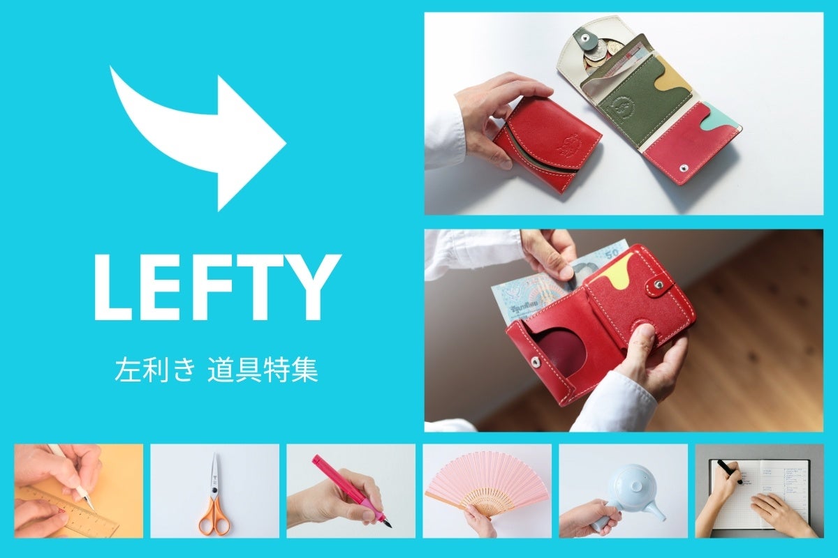革職人がつくった左利き専用ミニ財布や、夏に嬉しい左利き扇子、珍しい左利き専用手帳などをご紹介。