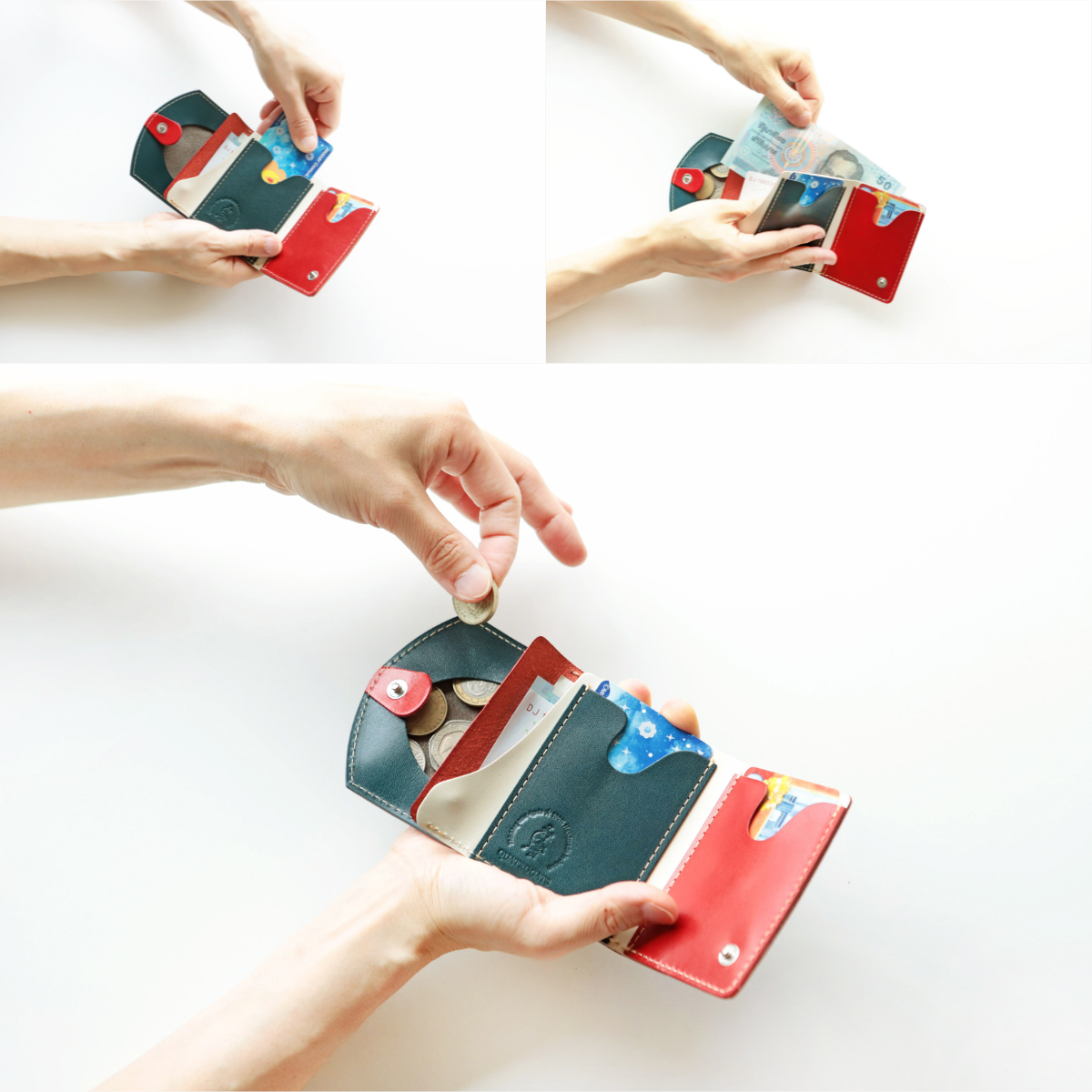 手のひらサイズなのに、通常の二つ折りのお財布とほぼ変わらない収納力で大活躍。 ミニマリストな方はもちろん、旅行やアウトドアなど荷物をコンパクトにしたいときにもおすすめです。