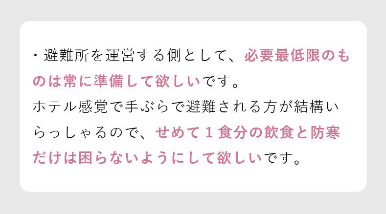 - 就寝時にできる工夫や、実際に避難所を運営されている方からの声も。