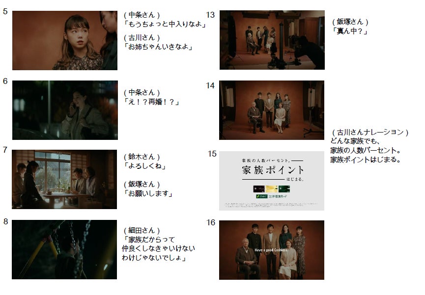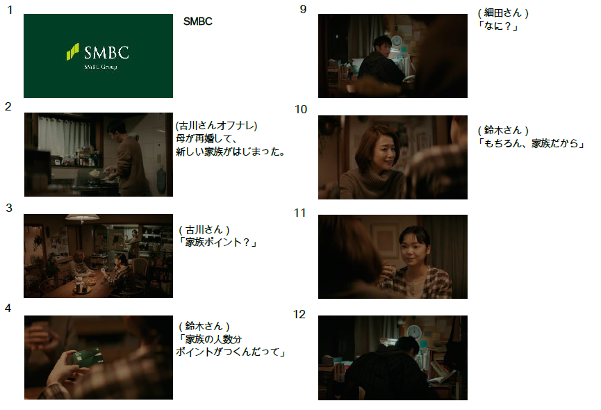三井住友カード株式会社(本社:東京都江東区、社長:大西 幸彦、以下:三井住友カード)は、ご利用いただく家族の人数に応じて還元率がアップする新しいサービス「家族ポイント」のCMキャラクターに鈴木京香さん、飯塚悟志さん、中条あやみさん、古川琴音さん、細田佳央太さんら豪華キャストを起用し、新TVCMシリーズ第1弾および第2弾となる「家族ポイント はじまる」篇(60秒・30秒)、「家族ポイント だって家族だから」篇(30秒・15秒)を1月1日(土)から全国で放映します。