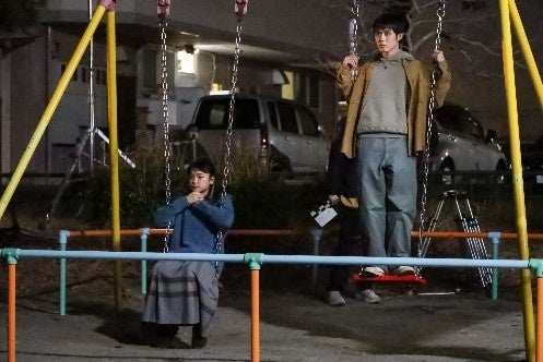 “旦那くん”との接し方に戸惑う次女と長男が会話するシーンは、日が暮れてから児童公園で行われました。細田さんは「ブランコの高さ、大丈夫?」と古川さんを気遣いましたが、古川さんは「思ったより寒くなくてよかった!」と安心した表情でブランコをこぎ、ピョンと飛び降りるアクションも軽々と披露。二人とも長時間の撮影による疲れを見せず、念入りにセリフの練習を行いながらNGなしで撮影を終えました。