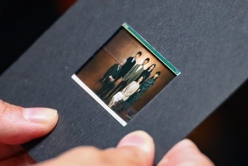 家族写真を撮るシーンは、明治時代に創業した歴史ある写真館で撮影が行われました。レトロな雰囲気が漂う建物や室内装飾、そしてこのCM撮影のため特別に製作された大型の背景幕を、鈴木さんはじめ全キャストが興味深く観察していました。広告用の写真撮影も大判のフィルムカメラを用いるなどこだわり抜いた設定で、撮影の合間にはテスト用のポラロイド写真を楽しそうに眺める鈴木さんの姿も見られました。