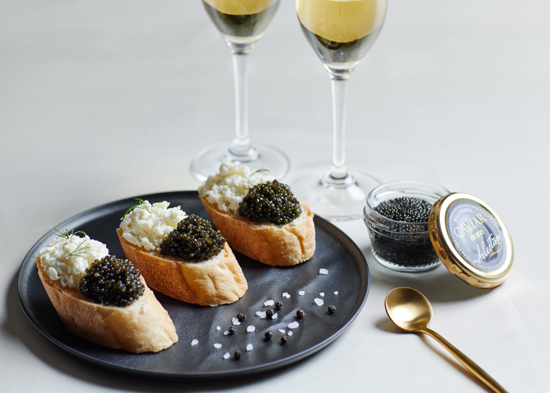 ■料金:海上カラ桶限定フードメニュー キャビアのブルスケッタ 15,000円(税込)*1セット2 名分相当量