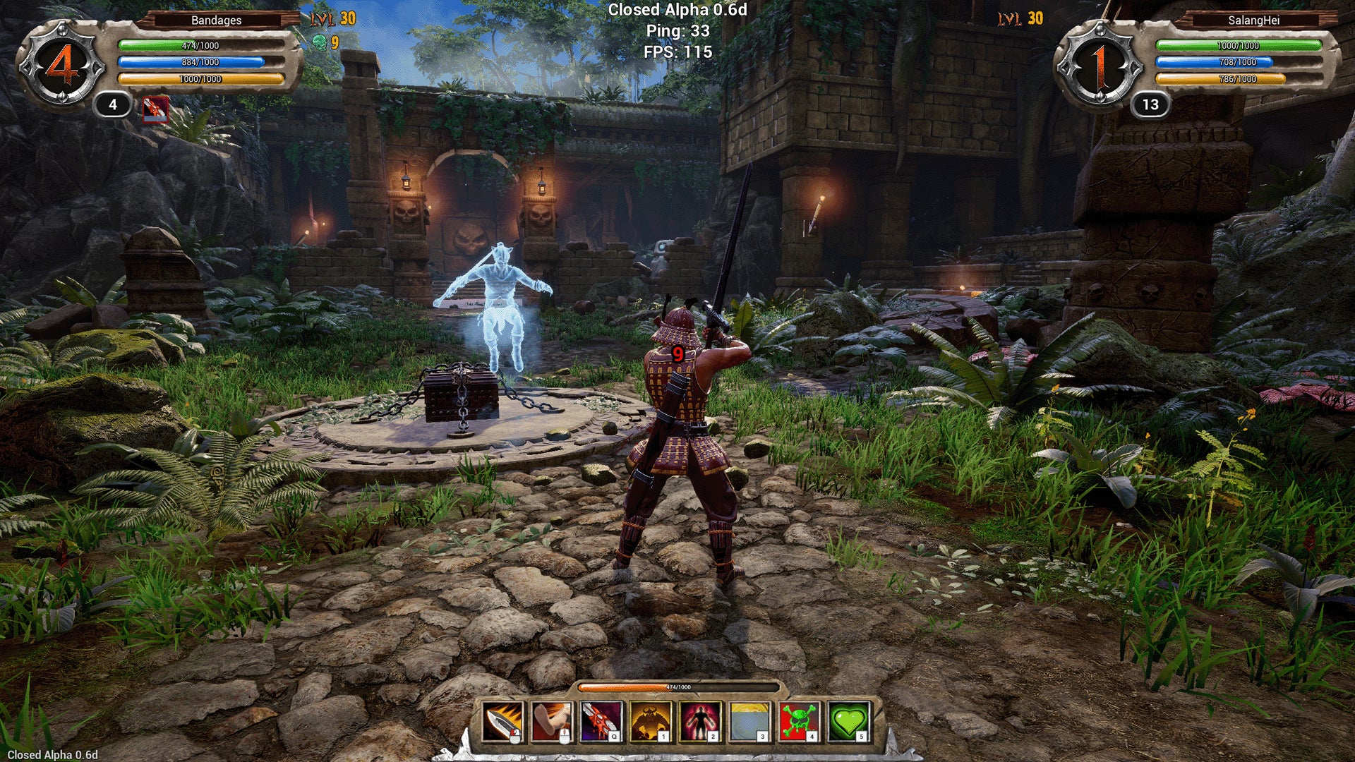 『9Lives Arena』のPvP対戦バトルは、独自の「パーマデスシステム」を採用しています。練習場であるTrainings Arenaと、本番のバトル会場であるRaked Arenaがあり、Raked Arenaのバトルでは負ける度にライフが1つずつ消滅します。9つのライフが全て消滅しても、ここでゲームオーバーではなく、プレーヤーはスピリットとなり、永久に不死身なキャラクターへと生まれ変わるために9つのライフを求めて狩りに出かけます。