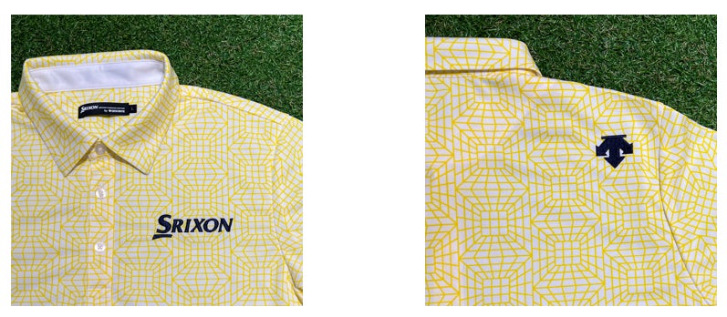 ・左胸『SRIXON』ロゴ*1/右後肩『デサント』ロゴ*2はプロ着用と同じ、大きいサイズ