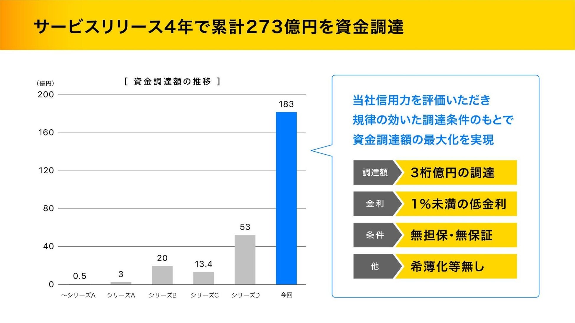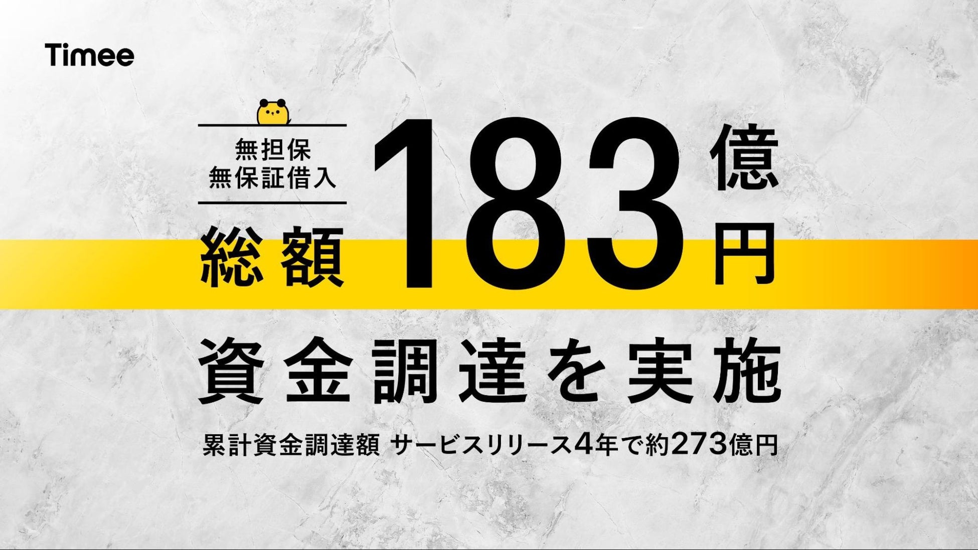 スキマバイトサービス「タイミー」を提供する株式会社タイミー(所在地:東京都豊島区、代表取締役:小川 嶺)は、事業の急激な成長拡大にともなう運転資金確保として、みずほ銀行、三菱UFJ銀行、りそな銀行をはじめとした大手銀行からの借入により総額183億円の資金調達(融資枠を含む)を行いました。今回の借入は長期借入やコミットメントライン(融資枠)などを含む中、直近の事業拡大による財務実績や将来性を踏まえ当社の信用力を評価いただいたことで、いずれも無担保・無保証・希薄化無し、借入金利はAll-in costで年利1.0%未満と、調達条件・コストを抑えた上での資金調達額最大化を実現しております。なお、今回の調達により、2018年8月のサービスリリース以降、借入を含む累計調達額は約273億円となりました。