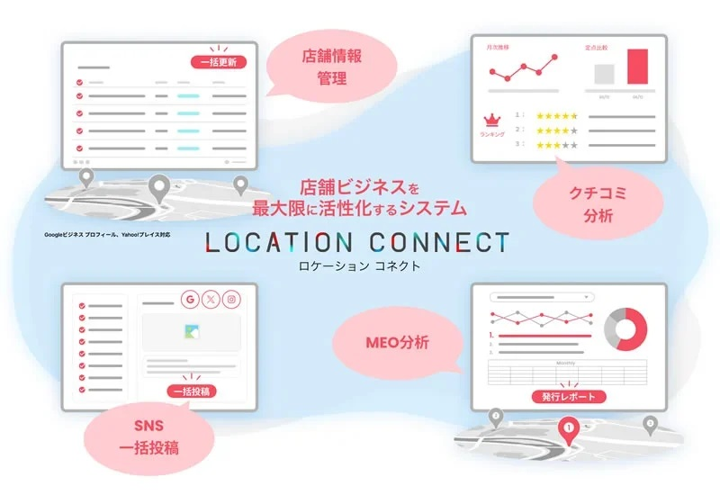 「Location Connect」はGoogleマップアカウントの運用を円滑にする様々な機能を実装しております。店舗事業者様に喜んでいただけるように日々様々な機能をアップデートしております。