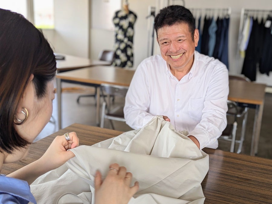 サンプル作成と試着を何度も繰り返して、ベストと思えるシルエットが完成しました。」(出樋社長)