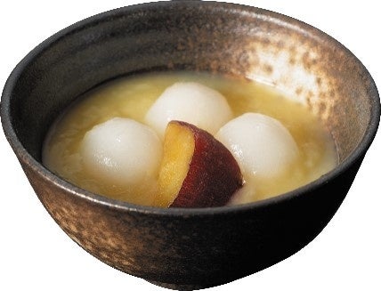鳴門金時使用のなめらかなポタージュに、甘露煮と甘音屋特製の団子をトッピングしました。