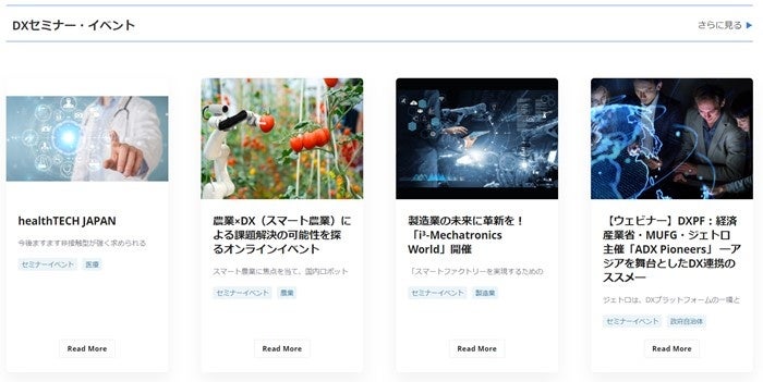 DXを実践している各産業会のキーとなる人物や企業によるセミナー、各業界の情報が集積するイベントを選定し紹介をしています。