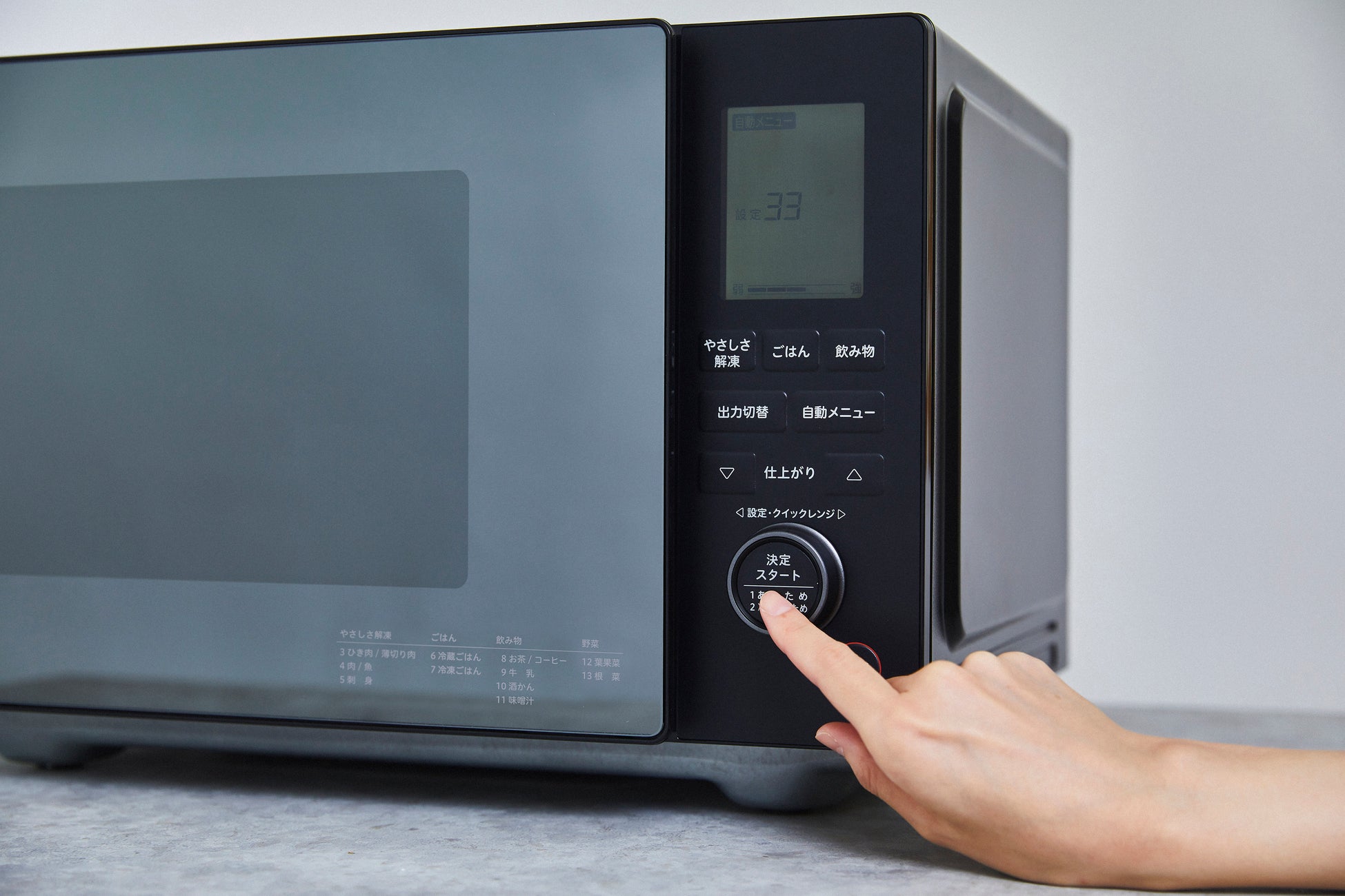 ハンドルの飛び出しがないフラットな扉は、運転時のみ庫内が見えるミラーガラスで、キッチンに置いてもすっきりとした印象に。見やすい大型表示や、豊富なメニューを選択しやすいダイヤルなど、操作性にもこだわっており、迷うことなく簡単に操作できます。