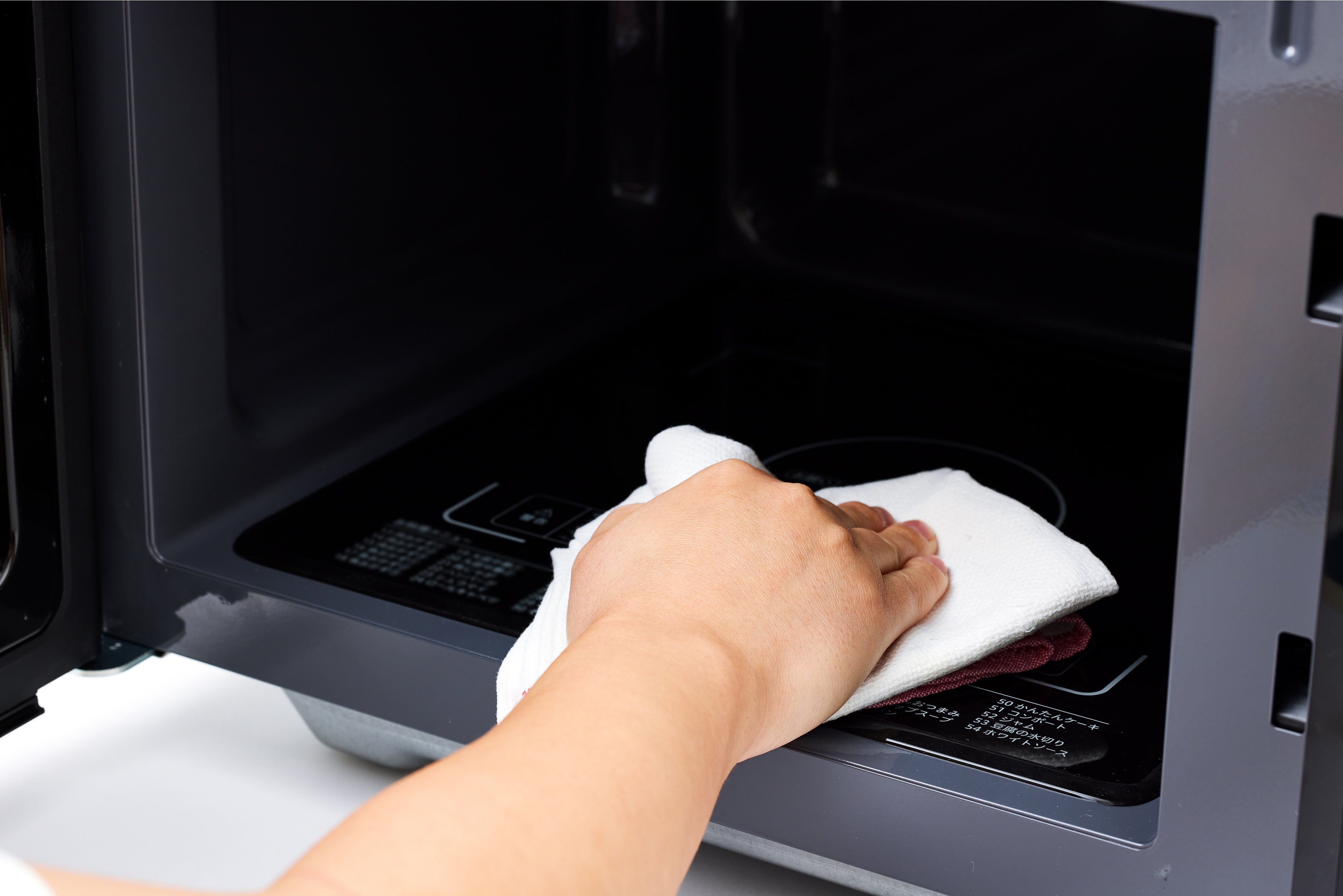 一般的なコーティングに比べて汚れの接触面が小さくなるため、時間が経ってもふき取りやすいのが特長です。こびりついてお掃除しづらかった調味料や油分など、庫内の汚れを簡単にふき取ることができるため、お手入れも簡単です。