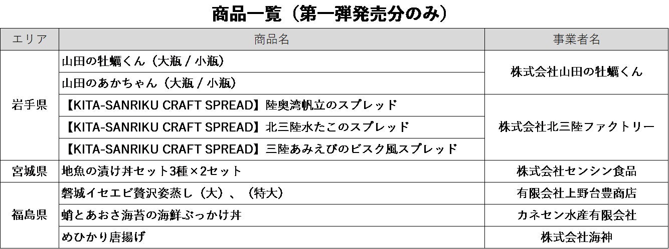 本事業で開発・リニューアルした商品の第一弾として、2022年12月15日(木)より、岩手県・宮城県・福島県の海の幸を使用した商品をECサイトにて発売します。