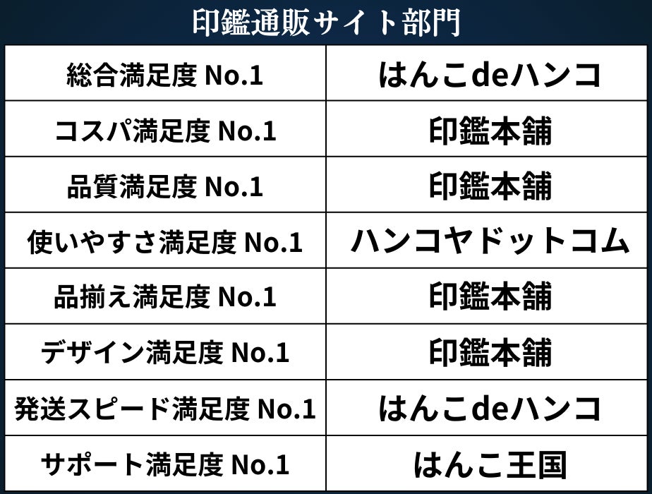 そのほか、使いやすさ満足度で「ハンコヤドットコム」、サポート満足度で「はんこ王国」がそれぞれ1位にランクインする結果となりました。