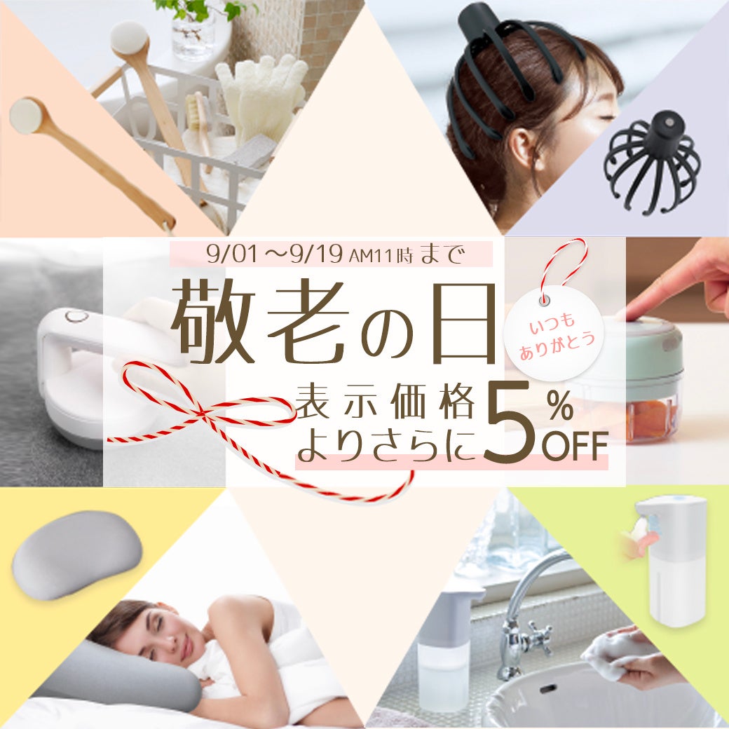 TOAmartオンラインショップでは敬老の日の贈り物にもぴったりなアイテムを期間限定で値引き販売をします。人気の『drop in spaボディブラシ』や『低反発フィットまくら』『モバイルシューズドライヤー』を期間限定で値引き販売します。