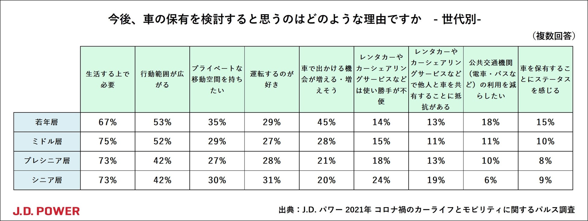 顧客満足度(CS)調査や消費者動向に関するリサーチ・コンサルティング会社である株式会社J.D. パワー ジャパン (本社:東京都港区、代表取締役社長:山本浩二、略称:J.D. パワー)は、2021年6月に、「コロナ禍のカーライフとモビリティ」に関するアンケート調査を実施しました。