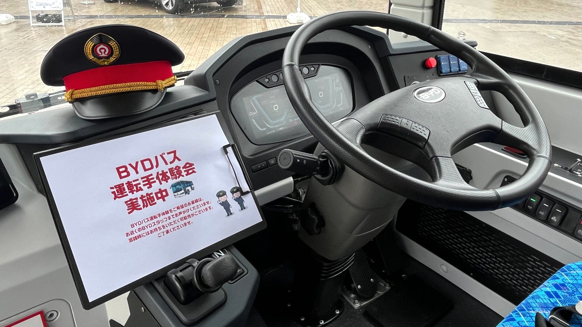 大型電気バス「K8」は、BYD Japan Groupのアイコンモデルとして会場でも“注目の的”に