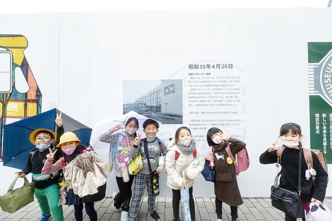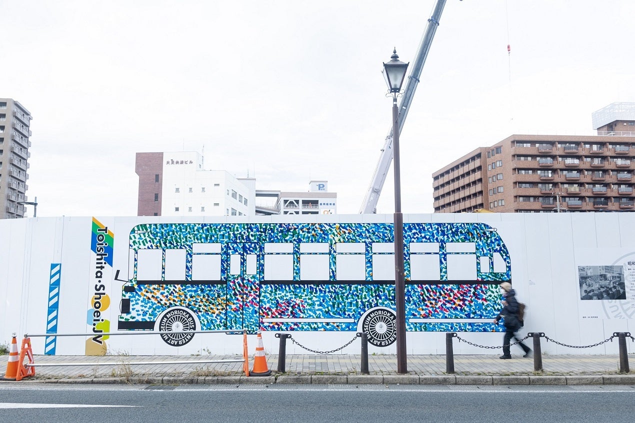 なおバスのデザインは、2021年の盛岡新バスセンター工事の際、仮囲いに描かれたバスの絵を基に制作しました。私たちはこれからも岩手に根付く歴史を尊重しながら社会を前進させる会社でありたいと考えています。