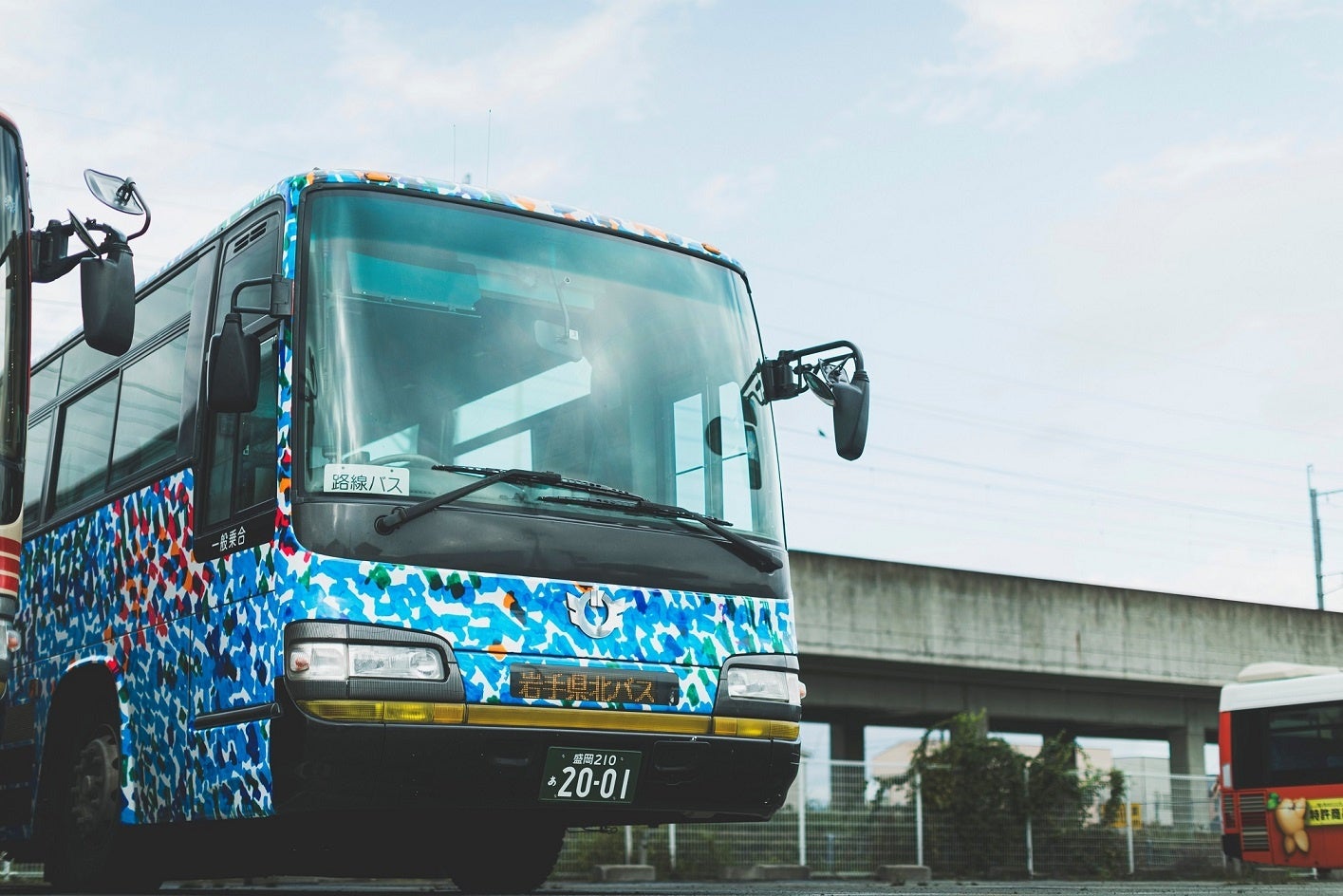 岩手県北バス・みちのりHD・ヘラルボニーの共創の取り組み。盛岡バスセンター開業1周年を機に実施