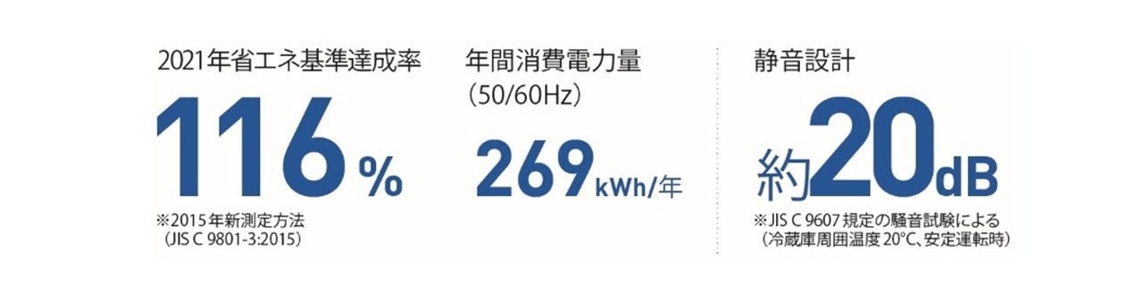 ※1:定格内容積200L以下クラスの国内家庭用ノンフロン冷凍冷蔵庫において。2025年10月現在。当社調べ。