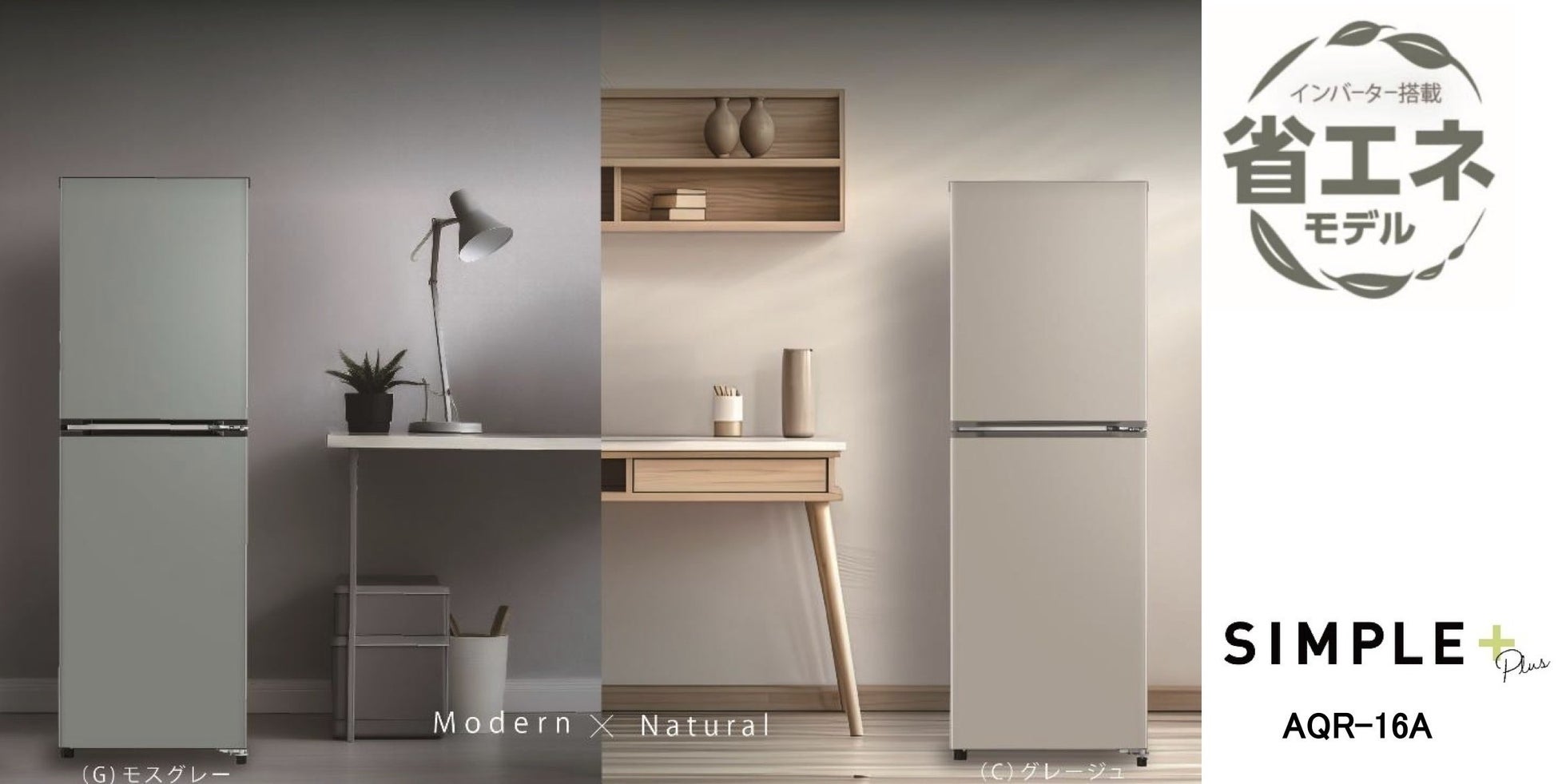 生活に豊かさをPLUSする「SIMPLE+」シリーズに新たに仲間入りしたのは、ありそうでなかった、キッチン小物やインテリア雑貨のようなニュアンスカラーのおしゃれな冷蔵庫。モダンなインテリアにも合わせやすい「モスグレー」と、ナチュラルな空間に良く似合う「グレージュ」の2色展開で、お部屋の雰囲気やお好みに合わせて、自分らしいコーディネートをお楽しみいただけます。