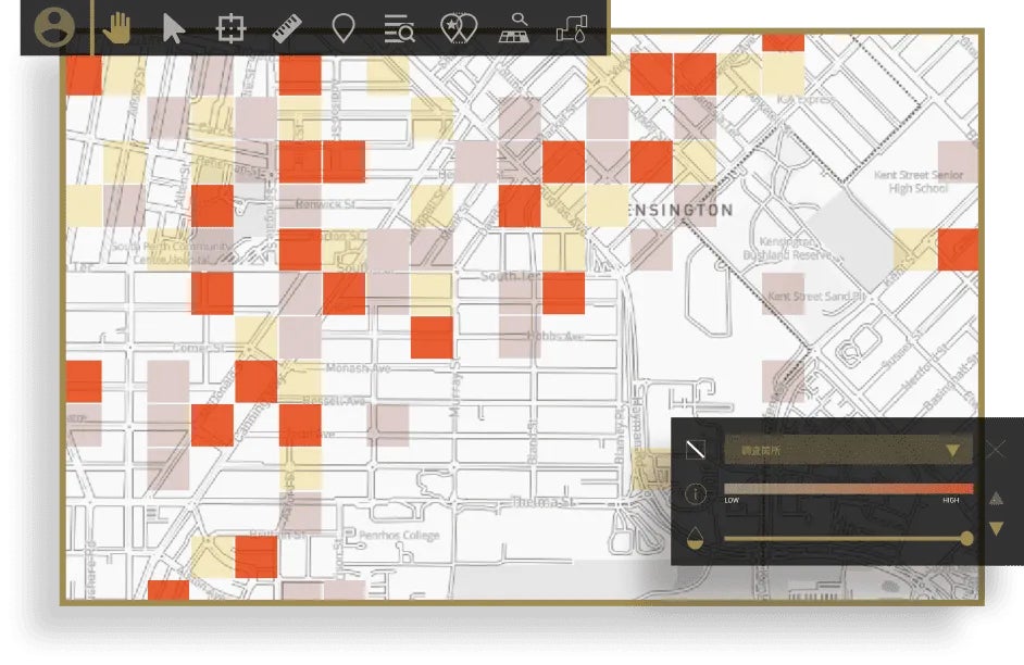 自治体が管理するエリアを100m四方の小さな区画に分け、そのエリアで漏水が起こるリスクを、5段階評価で見える化。漏水する可能性が高いエリアを絞り込むことで、優先的に調査すべき場所を簡単に見つけることができます。