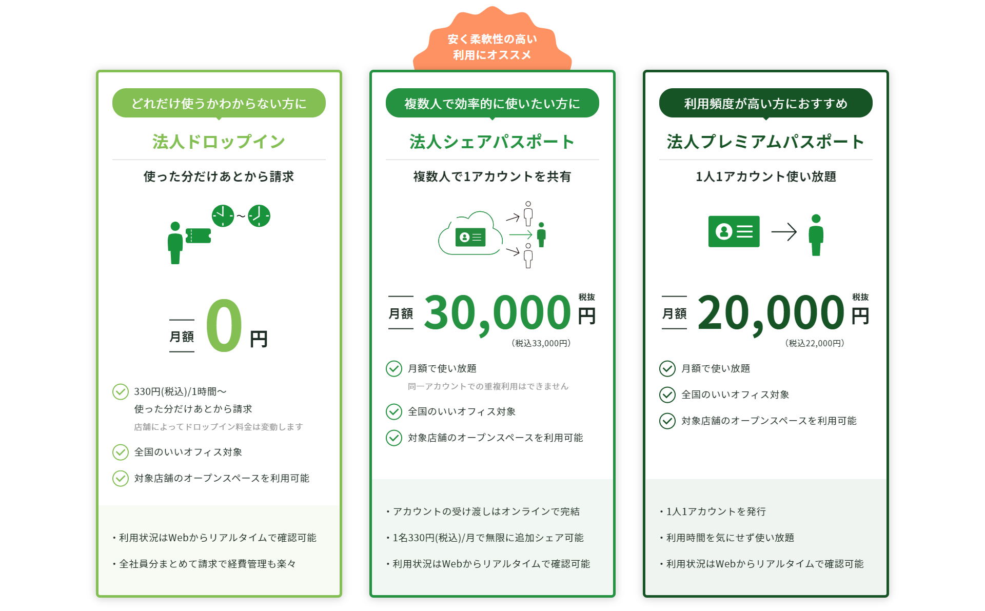 - 柔軟な働き方を実現するコワーキングスペースの法人プラン~働き⽅の課題・お悩みをすべて解決~