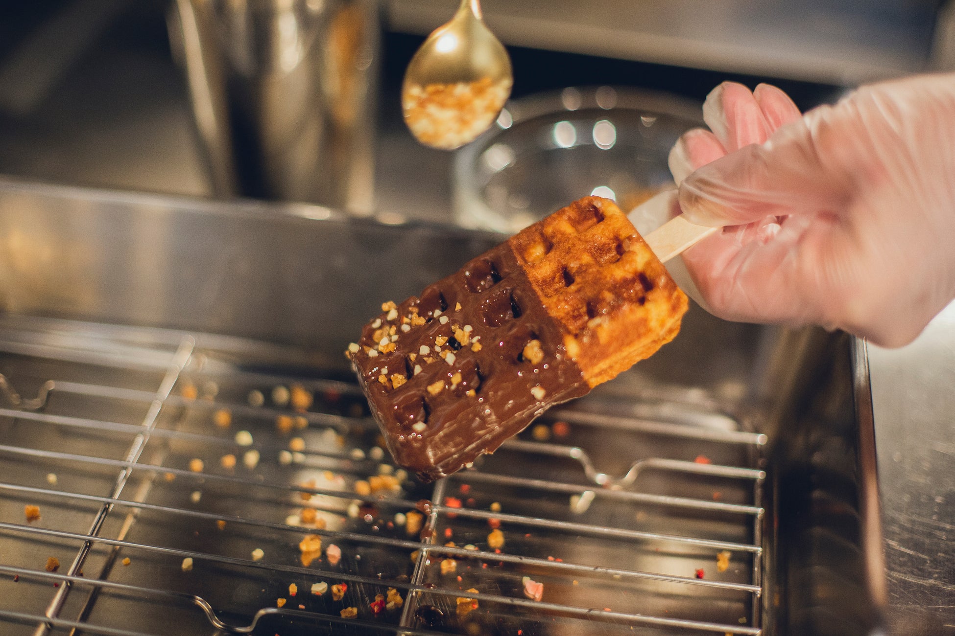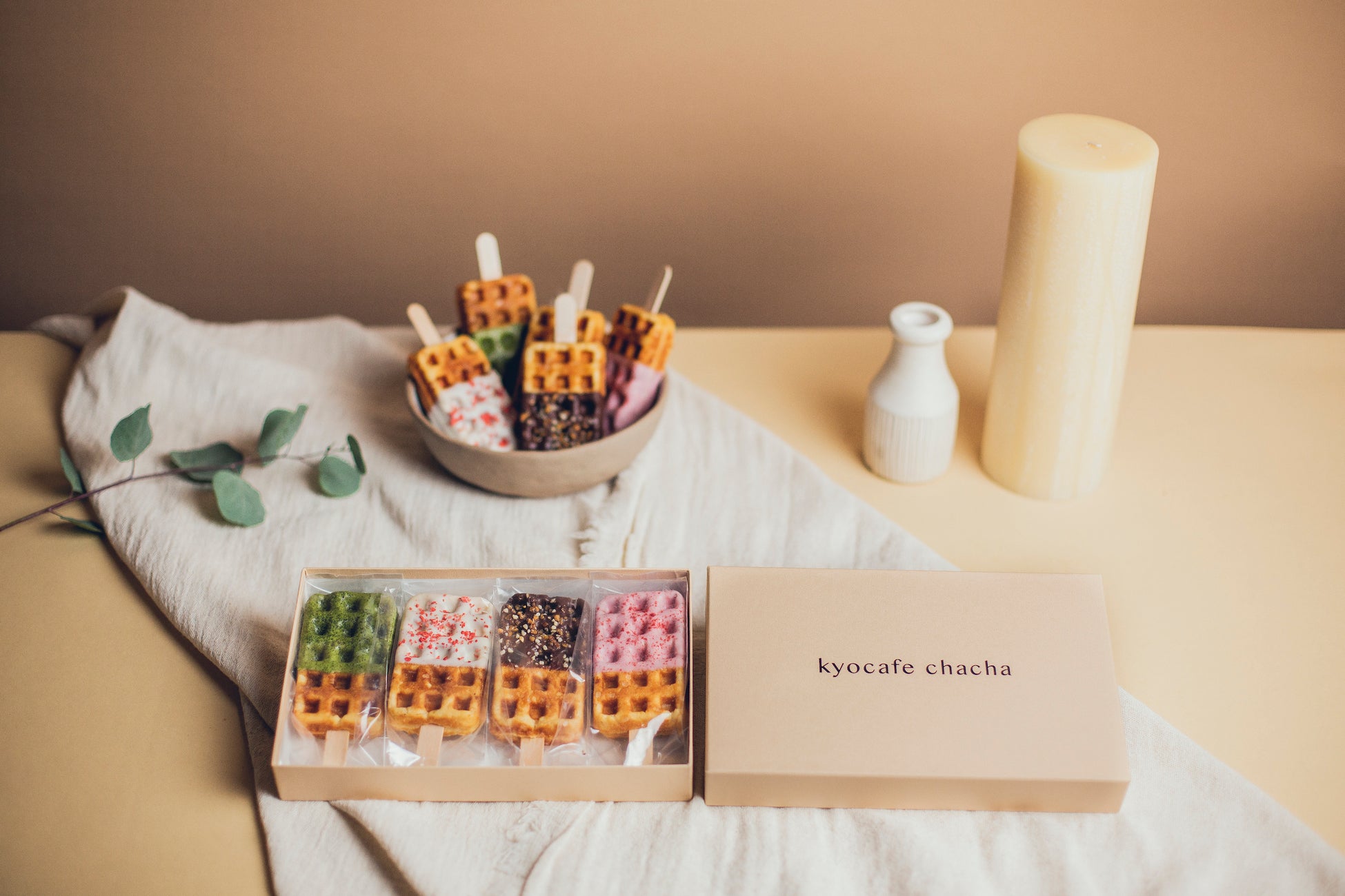 2017年4月より京都で運営しているワッフル専門店「kyocafe chacha」では、可愛くって食べやすいバータイプの新感覚ワンハンドスイーツ「京ワッフル」を販売しております。
