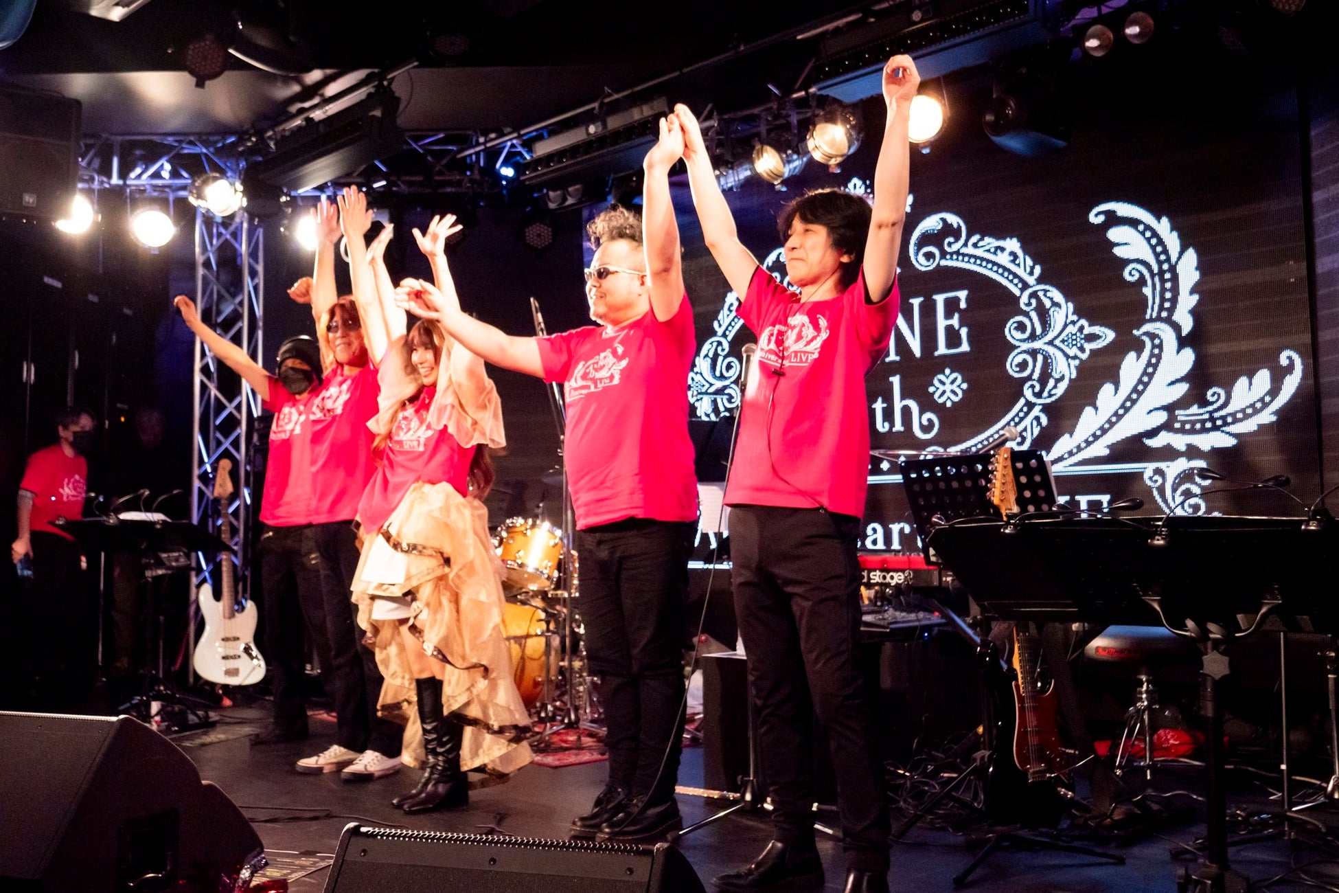 夜公演には、Ba.山崎洋、Dr.佐々木しげそ、もステージに揃いバンドもフルセットに。