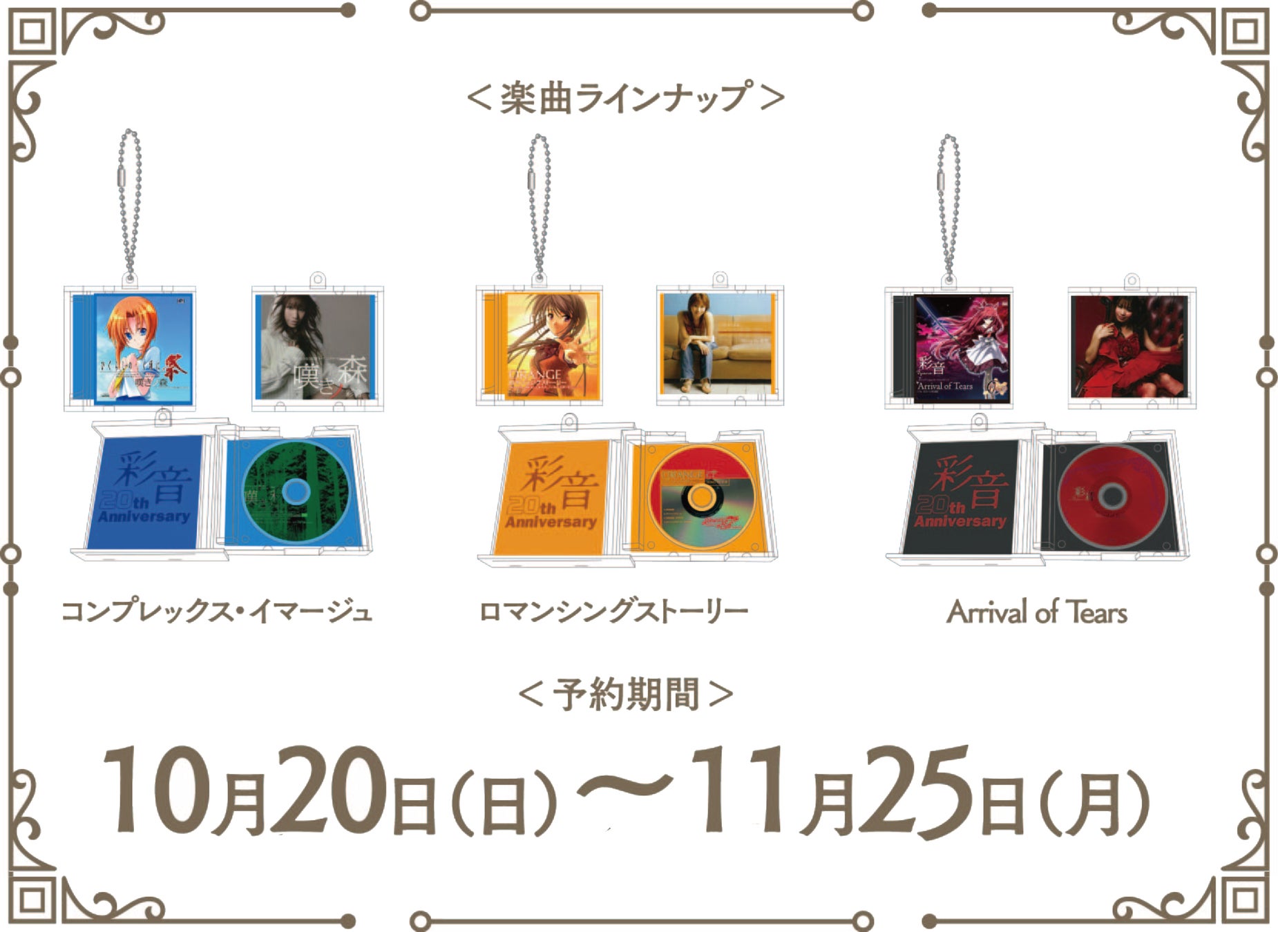 ご予約受付中!CD風キーホルダー付き「コンプレックス・イマージュ」「ロマンシングストーリー」「Arrival of Tears」デジタル音源発売決定!
