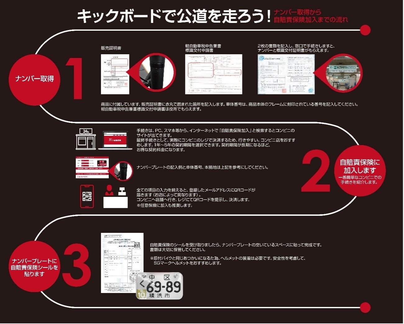 ※本製品で公道を走行するには、車体登録、ナンバープレートの取得、自賠責保険への加入が必要となります。