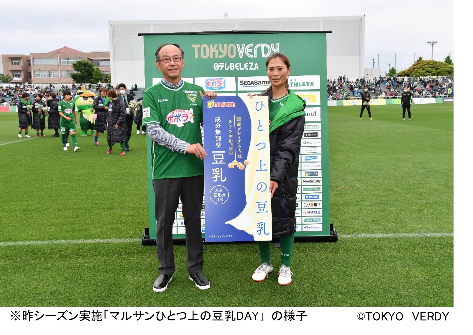 日テレ・東京ヴェルディベレーザは、女子サッカー界のリーディングチームです。コロナ禍で練習や試合で思うようにいかない場面も多いとは思いますが、持ち前のパワーとバイタリティーで昨年以上にWEリーグでご活躍していただくことで、大豆や豆乳の素晴らしさを広く発信していただけたらと願っております。